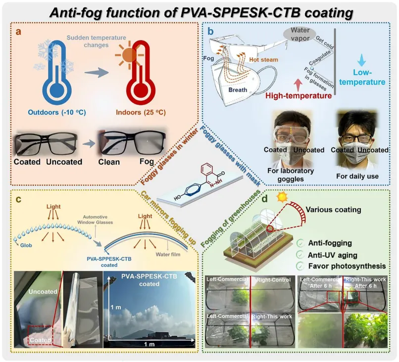 你是否经历过这些瞬间:冬天一进室内,眼镜秒变“磨砂款”;开车途中前挡玻璃起雾,危险又糟心;温室大棚结雾遮光,影响农作物采光……这一切,都将被一款长效、透明、能自发热的新型防雾涂层彻底改变。