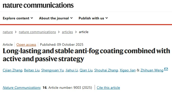 在日常生活中,表面结雾是一种常见现象,尤其在接近或低于大气露点时,水蒸气凝结在表面形成光散射微液滴。这一现象不仅会在从眼镜到太阳能电池板等各种应用中造成严重的视力障碍和光学透明度下降,还会降低温室和光伏组件等需要清晰光学界面的系统的能源效率。
