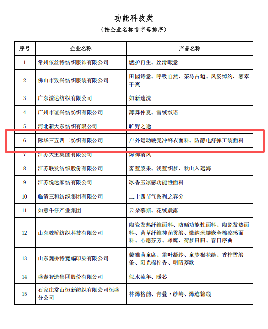 近日,中国棉纺织行业协会正式发布《2025年度中国棉织行业创新产品目录》,际华3542公司户外运动硬壳冲锋衣面料和防静电舒弹工装面料成功入选“功能科技类”创新产品目录,彰显了企业在纺织新材料研发与应用方面的领先实力。