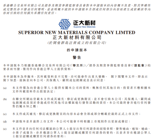 2021年6月15日,来自山东淄博的正大新材料有限公司SUPERIOR NEW MATERIALS COMPANY LIMITED(简称"正大新材料”) 向港交所递交招股书,拟在香港主板IPO上市,光银国际为独家保荐人。